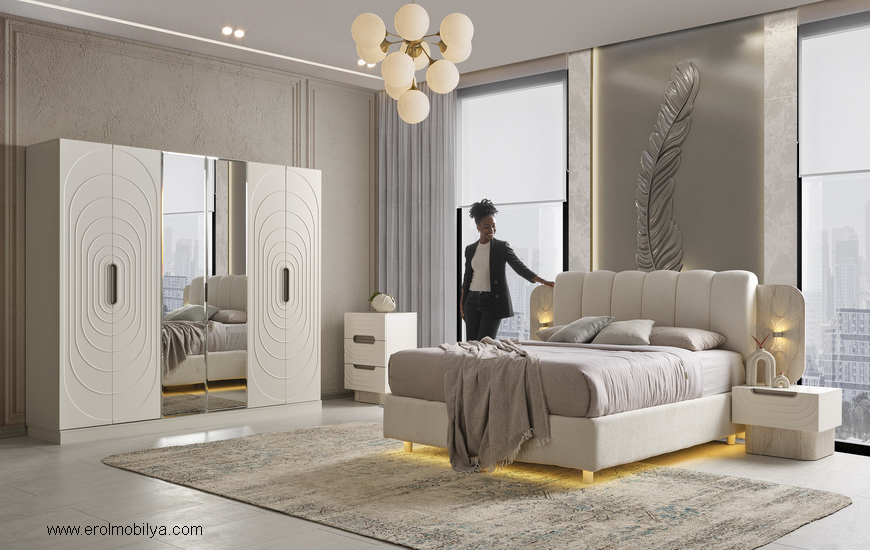 Ürüne Ait Parça Adetleri : 6 Kapılı Dolap, Şifonyer + Aynası, 2 Adet Komodin, Başlık , Çamaşırlık