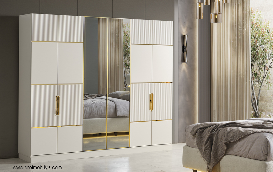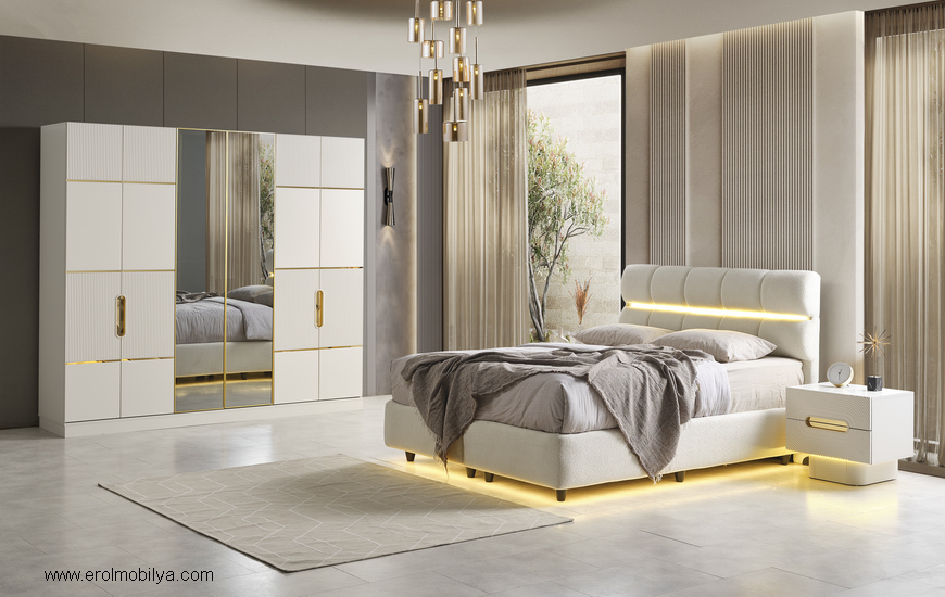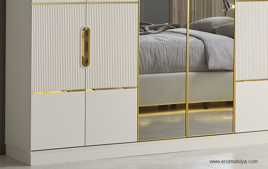 Ürüne Ait Parça Adetleri6 Kapılı Dolap, Şifonyer + Aynası, 2 Adet Komodin, Başlık, PUF