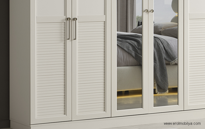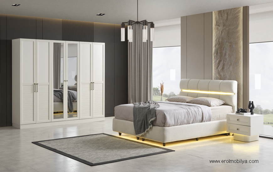 Ürüne Ait Parça Adetleri6 Kapılı Dolap, Şifonyer + Aynası, 2 Adet Komodin, Başlık, PUF