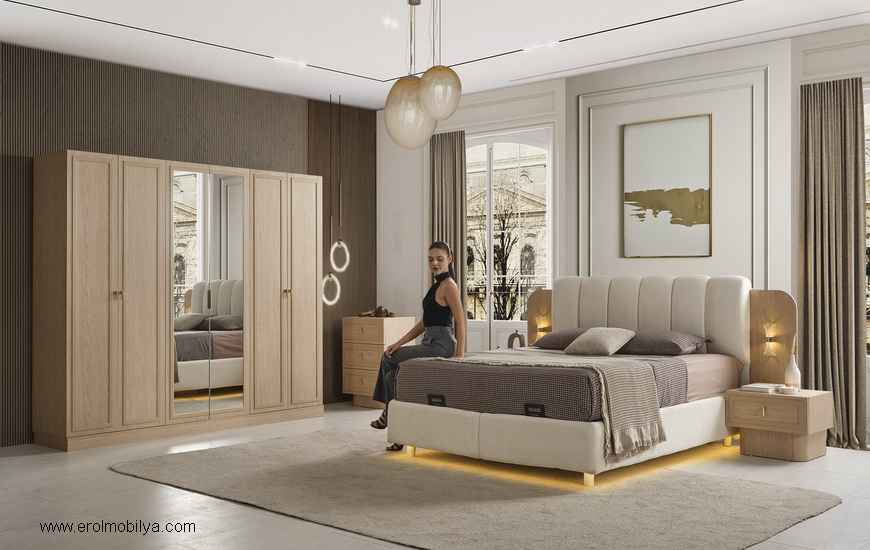 Ürüne Ait Parça Adetleri : 6 Kapılı Dolap, Şifonyer + Aynası, 2 Adet Komodin, Başlık , Çamaşırlık