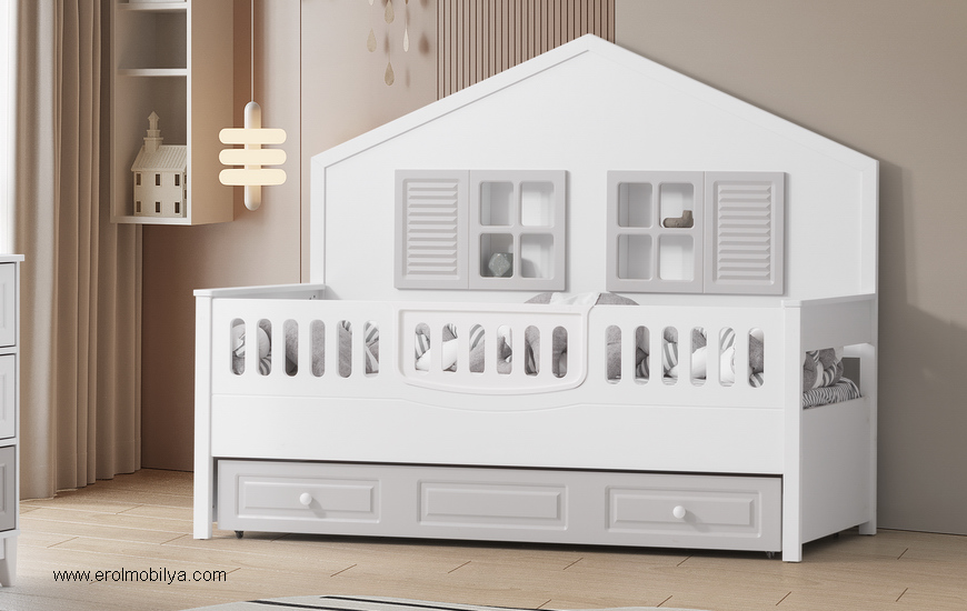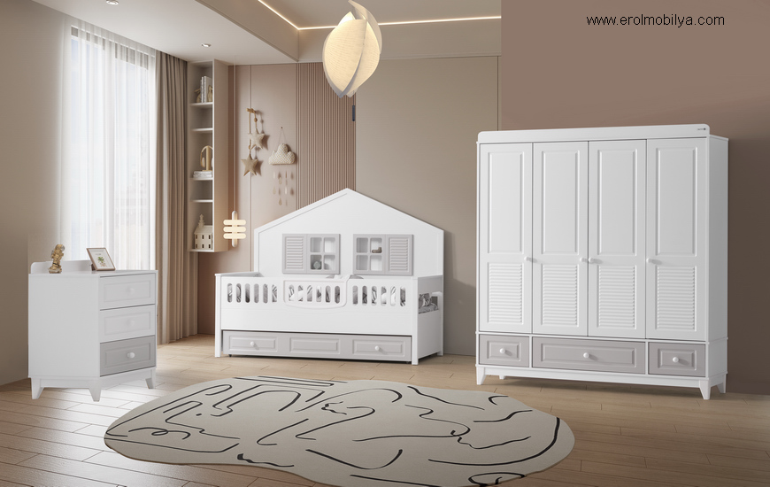 Ürüne Ait Parça Adetleri : 4 Kapılı Gardırop, Şifonyer, Mia Yavrulu Karyola, Korkuluk Aparatı Bu Üründe Üst Yatak Ölçüsü : 90 cm * 190 cm (Yaylı Yatak Fiyata Dahil Değildir) Yavru Yatak Ölçüsü : 80 cm * 180 cm (Yaylı Yatak Fiyata Dahil Değildir) Yatak ve Uyku Seti Fiyata Dahil DEĞİLDİR ÜRÜN RENGİ : BEYAZ - GRİ