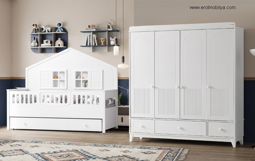 Ürüne Ait Parça Adetleri : 4 Kapılı Gardırop, 6 Çekmece Şifonyer, Mia Yavrulu Karyola, Korkuluk Aparatı Bu Üründe Üst Yatak Ölçüsü : 90 cm * 190 cm (Yaylı Yatak Fiyata Dahil Değildir) Yavru Yatak Ölçüsü : 80 cm * 180 cm (Yaylı Yatak Fiyata Dahil Değildir) Yatak ve Uyku Seti Fiyata Dahil DEĞİLDİR