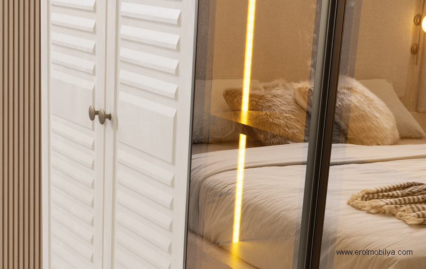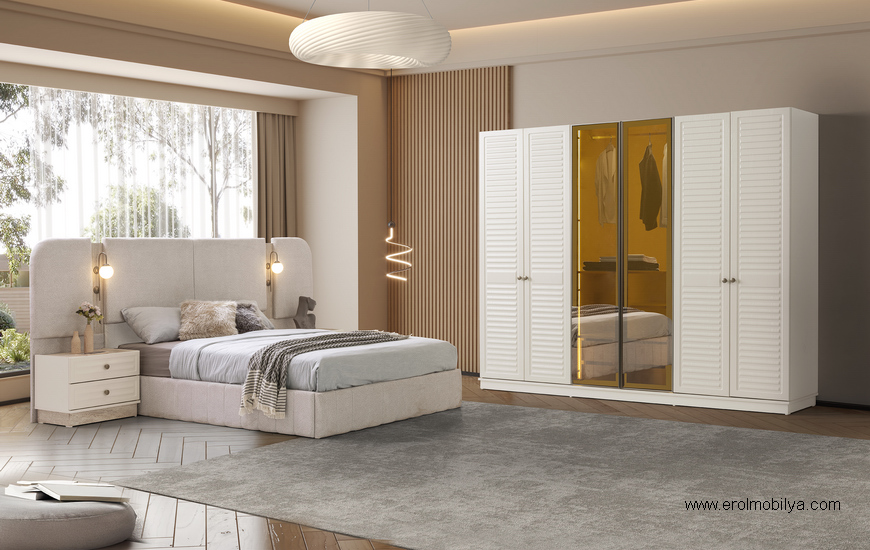 Ürüne Ait Parça Adetleri : 6 Kapılı Dolap, Şifonyer + Aynası, 2 Adet Komodin, Başlık Bu Üründe Başlığa Uygun Baza ve Yatak Ölçüsü : 150 cm * 200 cm veya 160 cm * 200 cm dir(Yaylı Yatak ve Baza Fiyata Dahil Değildir) * TSE |