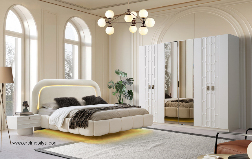 Ürüne Ait Parça Adetleri : 6 Kapılı Dolap, Şifonyer + Aynası, 2 Adet Komodin, Başlık Bu Üründe Başlığa Uygun Baza ve Yatak Ölçüsü : 150 cm * 200 cm veya 160 cm * 200 cm dir(Yaylı Yatak ve Baza Fiyata Dahil Değildir) * TSE |