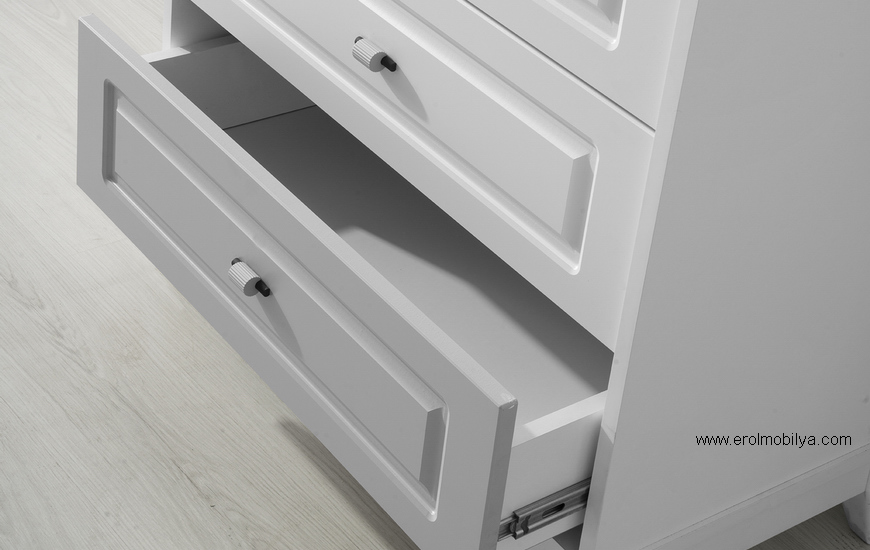 * Üretiminde Gövde Kısmı E-1 Kalite Belgeli Yonga Levha ,Çekmece Ön Yüzeylerinde MDF Kullanılmaktadır.