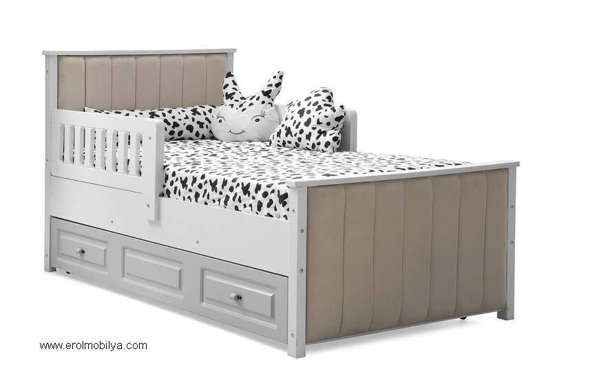Ürüne Ait Parça Adetleri : Yavrulu Karyola Karyola Yatak Ölçüsü : 90 cm * 190 cm (Yaylı Yatak Fiyata Dahil Değildir) Yavru Yatak Ölçüsü : 80 cm * 180 cm (Yaylı Yatak Fiyata Dahil Değildir) ÜRÜN RENGİ : BEYAZ - GRİ (BAŞLIK KUMAŞ RENGİ KREM)